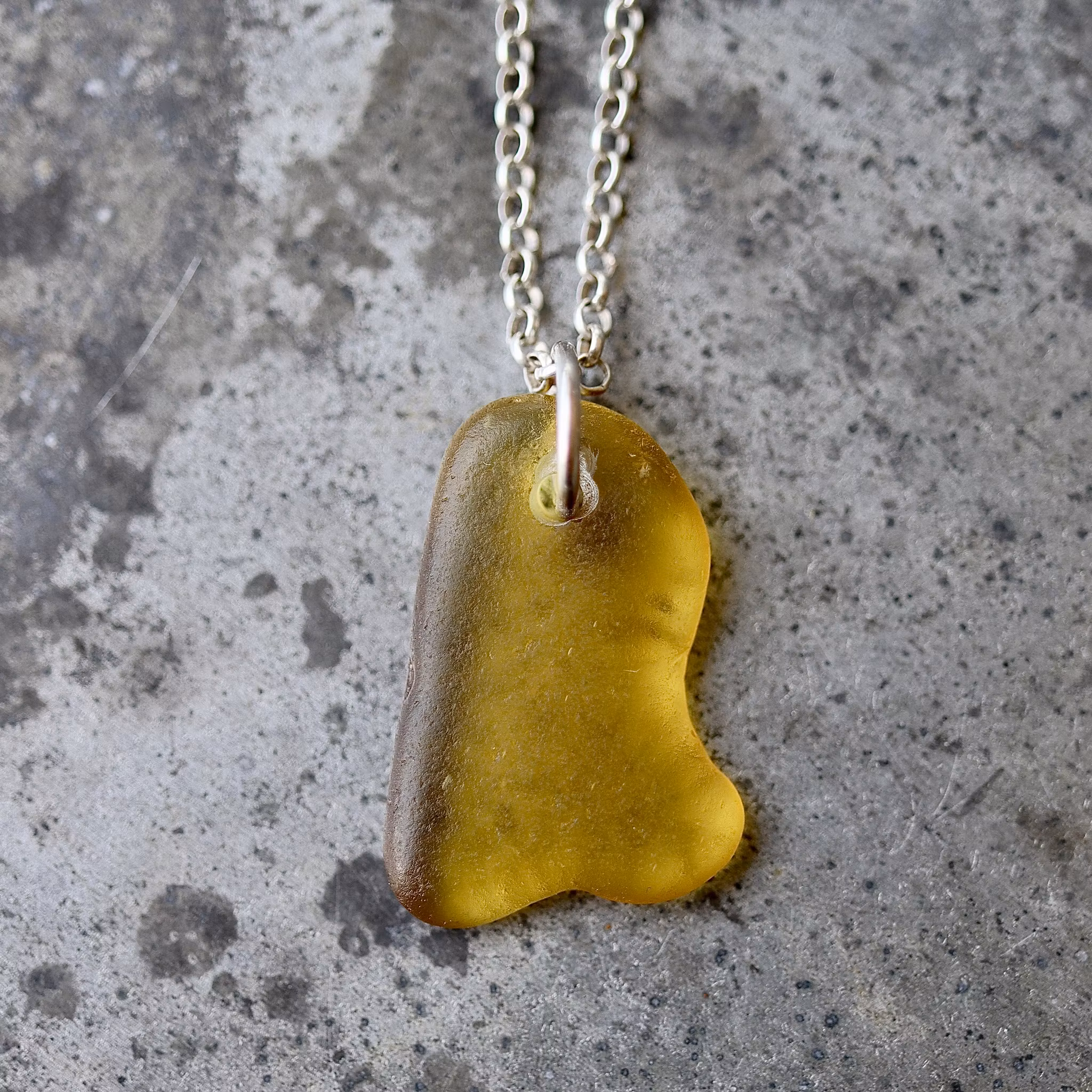 Havsglaset är samlat längs Skånes stränder och helt obearbetat, endast varsamt tvättat och borrat.