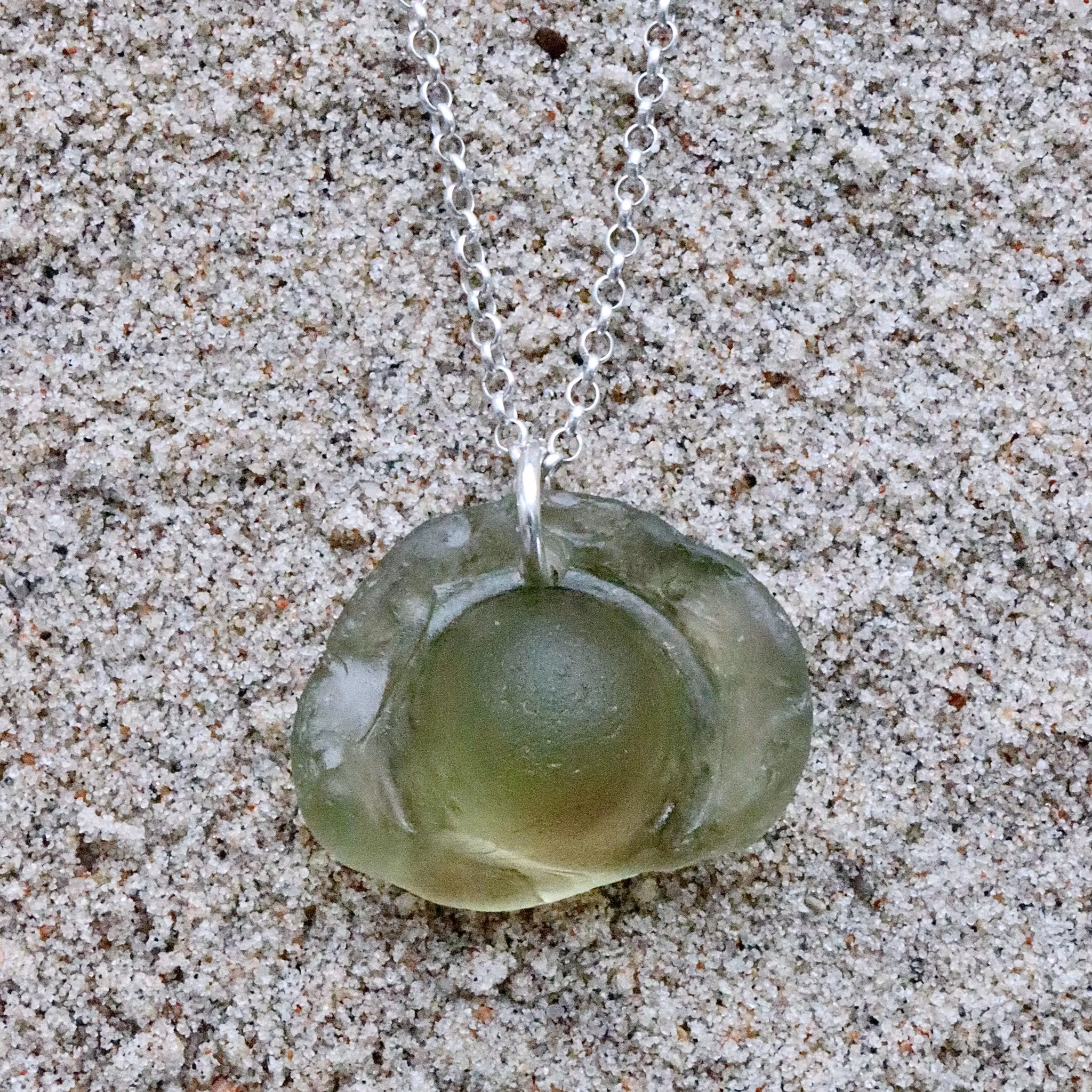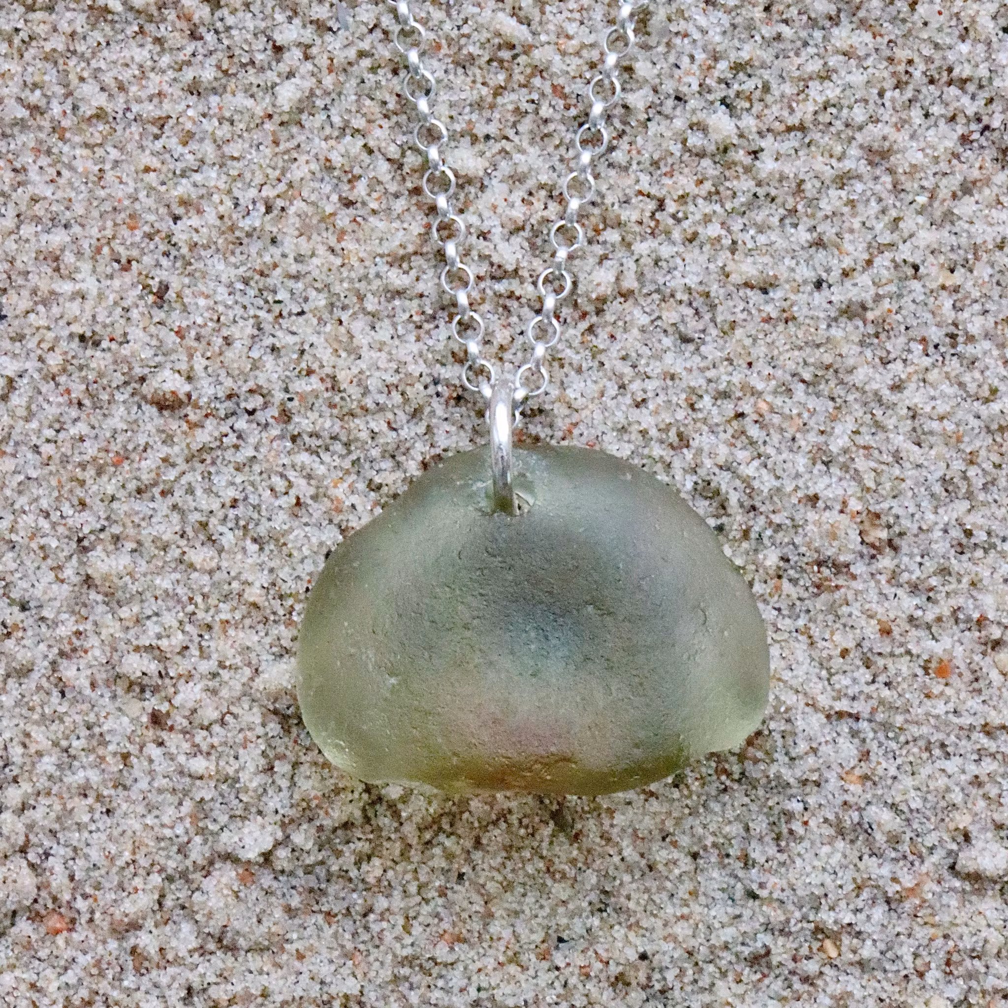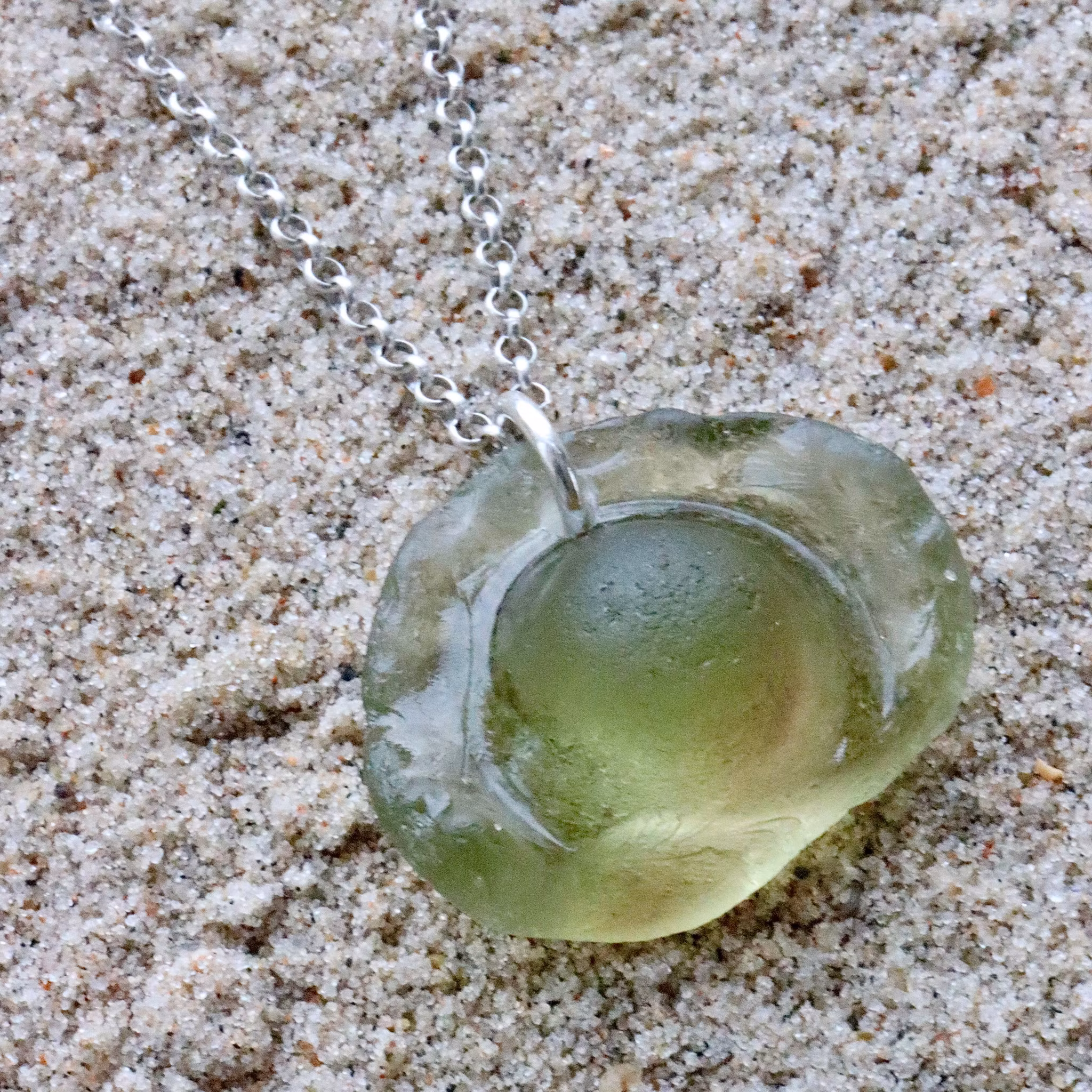 Havsglaset är samlat längs Skånes stränder och helt obearbetat, endast varsamt tvättat och borrat.