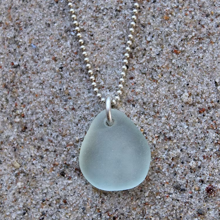 Havsglaset är samlat längs Skånes stränder och helt obearbetat, endast varsamt tvättat och borrat.