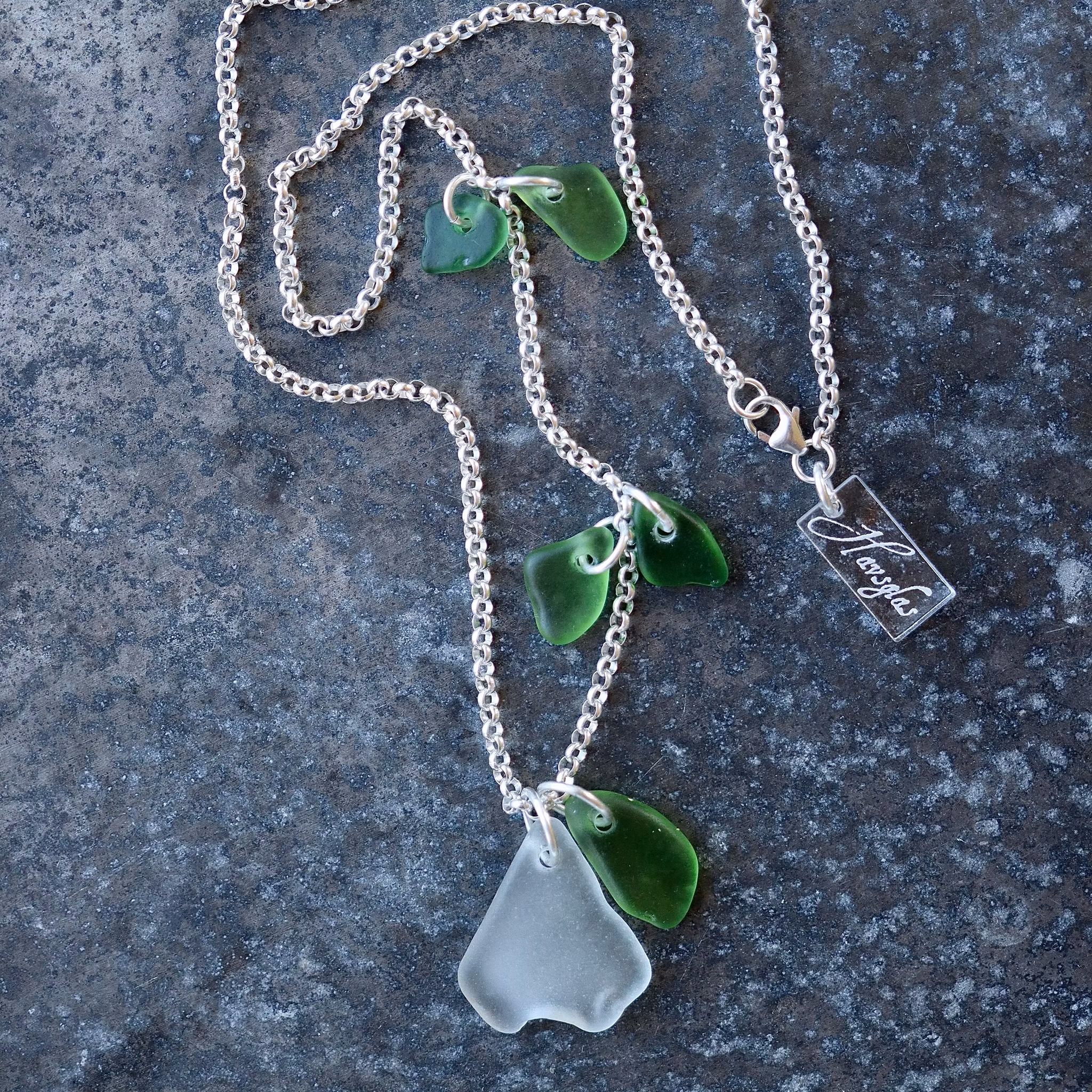 Havsglaset är samlat längs Skånes stränder och helt obearbetat, endast varsamt tvättat och borrat.
