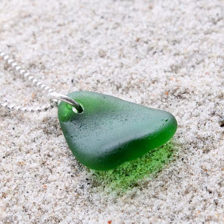 Havsglaset är samlat längs Skånes stränder och helt obearbetat, endast varsamt tvättat och borrat.
