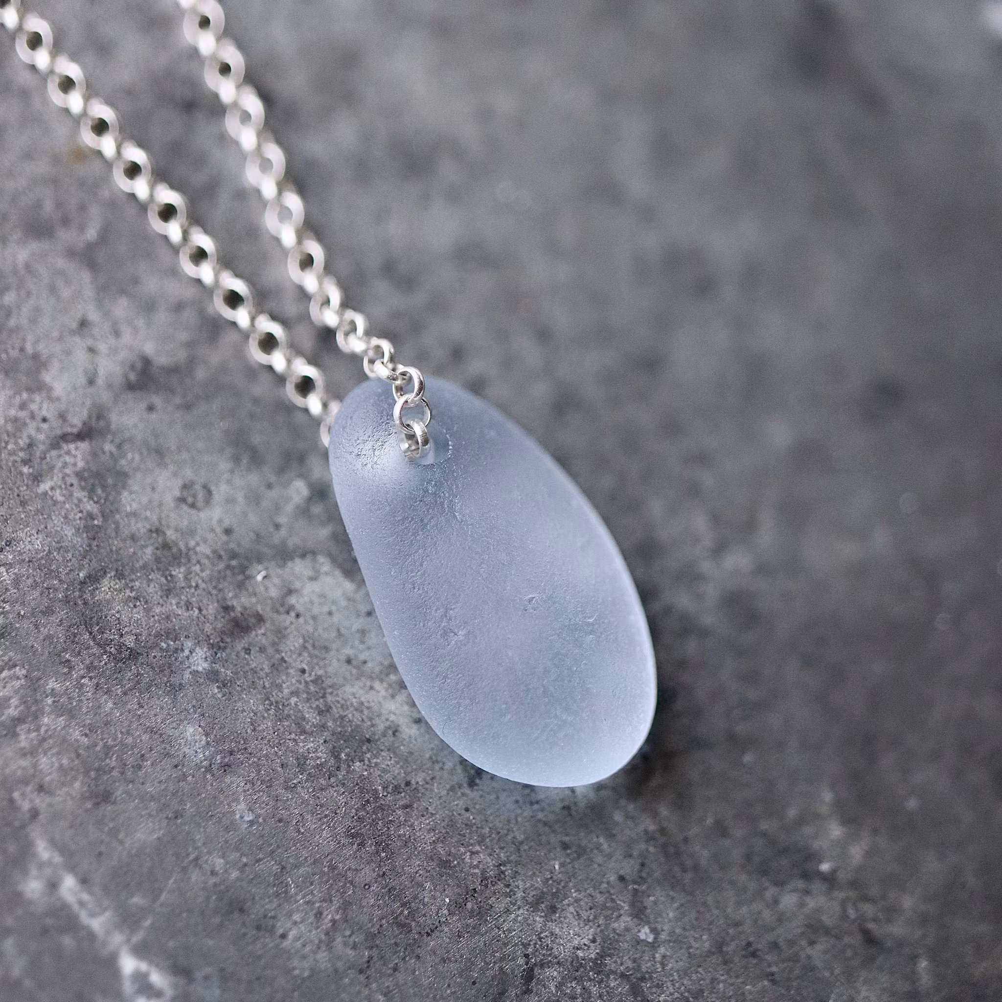 Havsglaset är samlat längs Skånes stränder och helt obearbetat, endast varsamt tvättat och borrat.