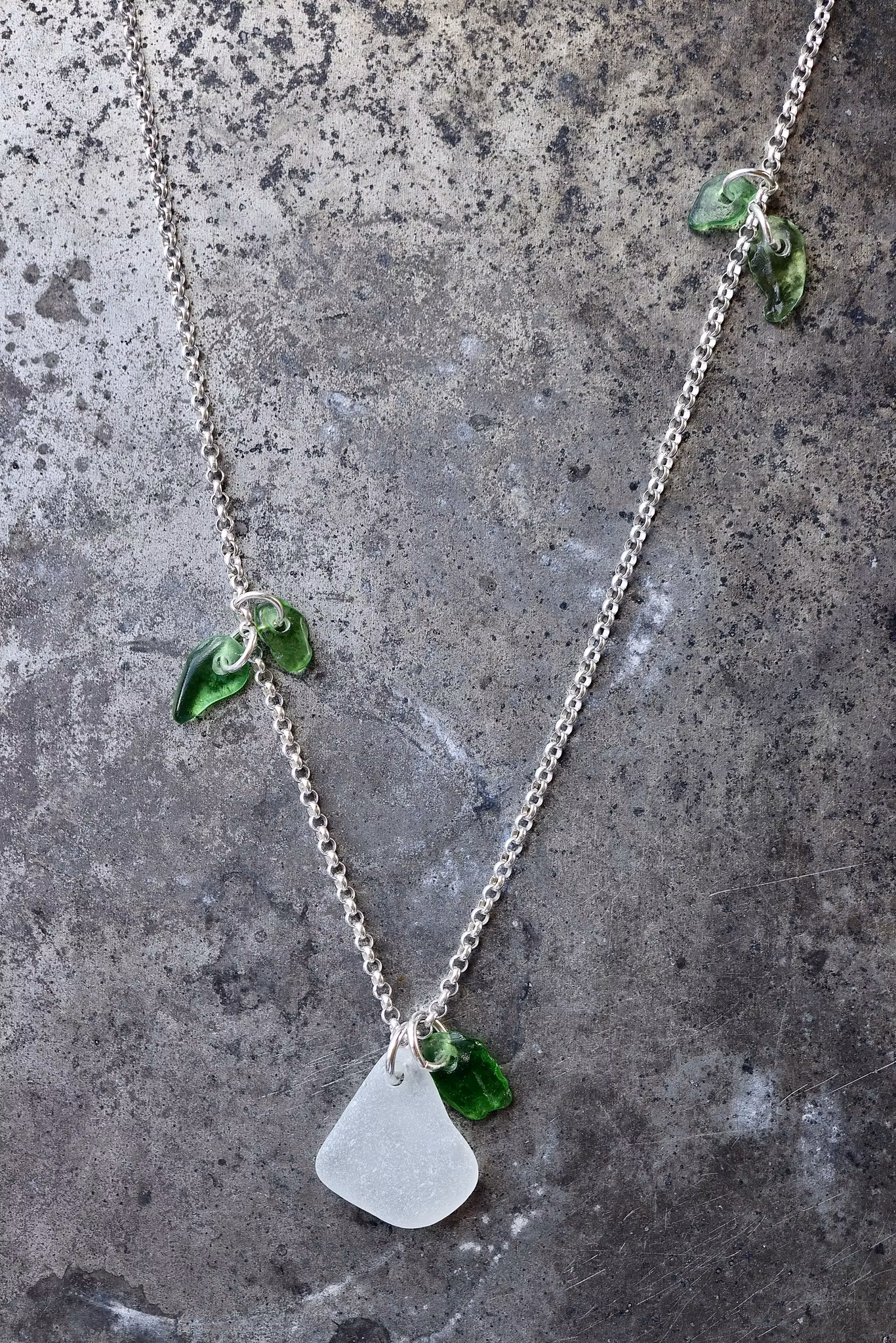 60 cm halskedja av äkta silver, i låset sitter en plexitag "Havsglas" tillverkad i Sverige.