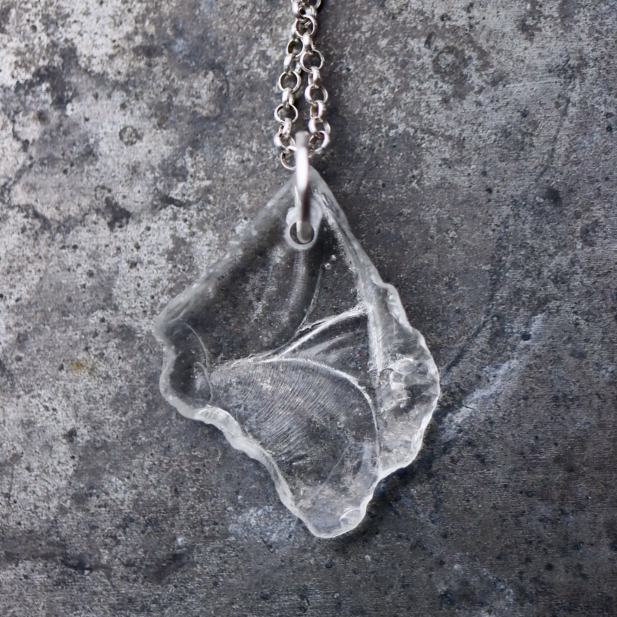 Halskedja av äkta silver, välj mellan 45, 50 och 60 cm, i låset sitter en plexitag "Havsglas" tillverkad i Sverige.