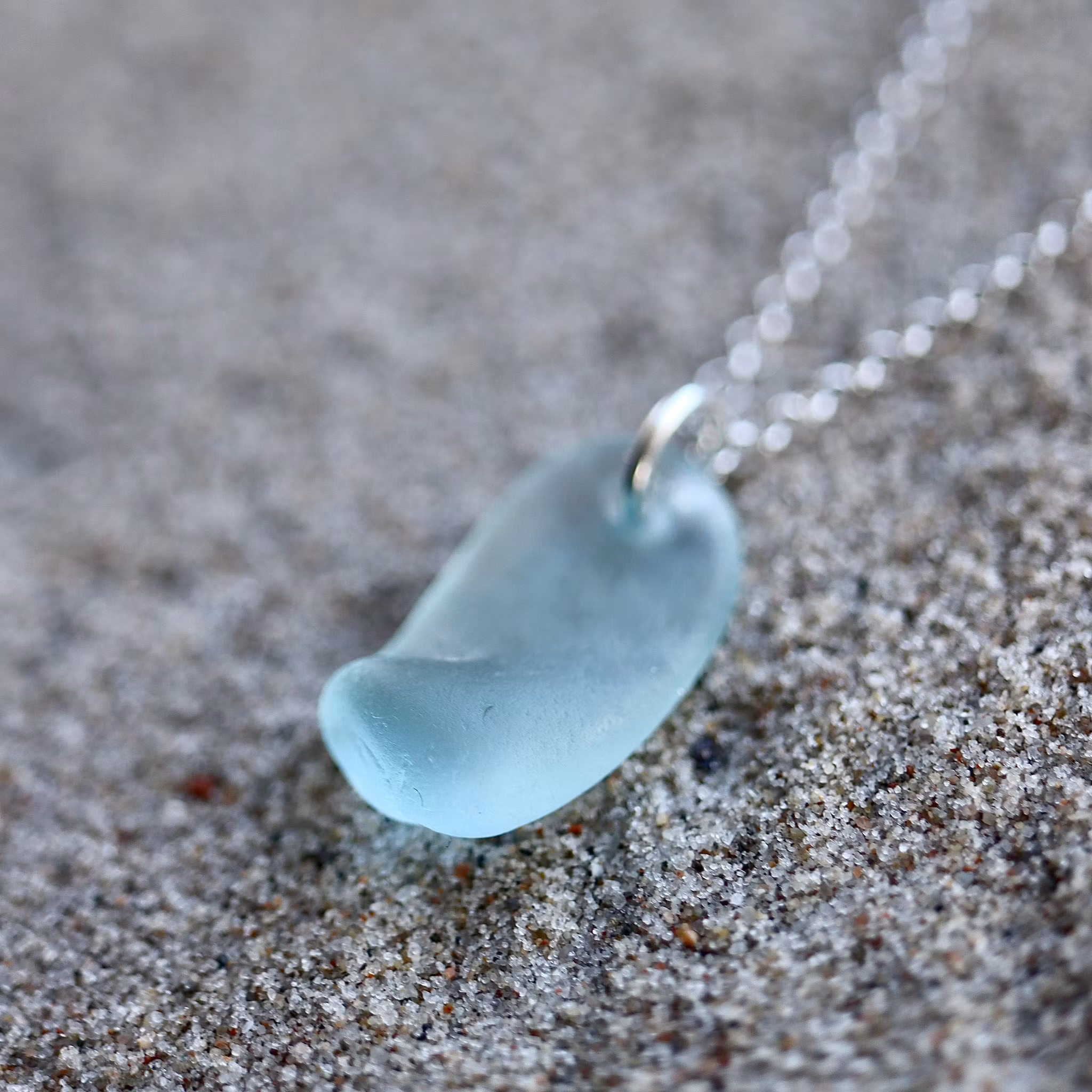 Halskedja av äkta silver, välj mellan 45, 50 och 60 cm, i låset sitter en plexitag "Havsglas" tillverkad i Sverige.