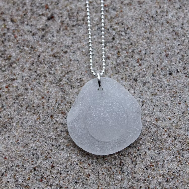Havsglaset är samlat längs Skånes stränder och helt obearbetat, endast varsamt tvättat och borrat.