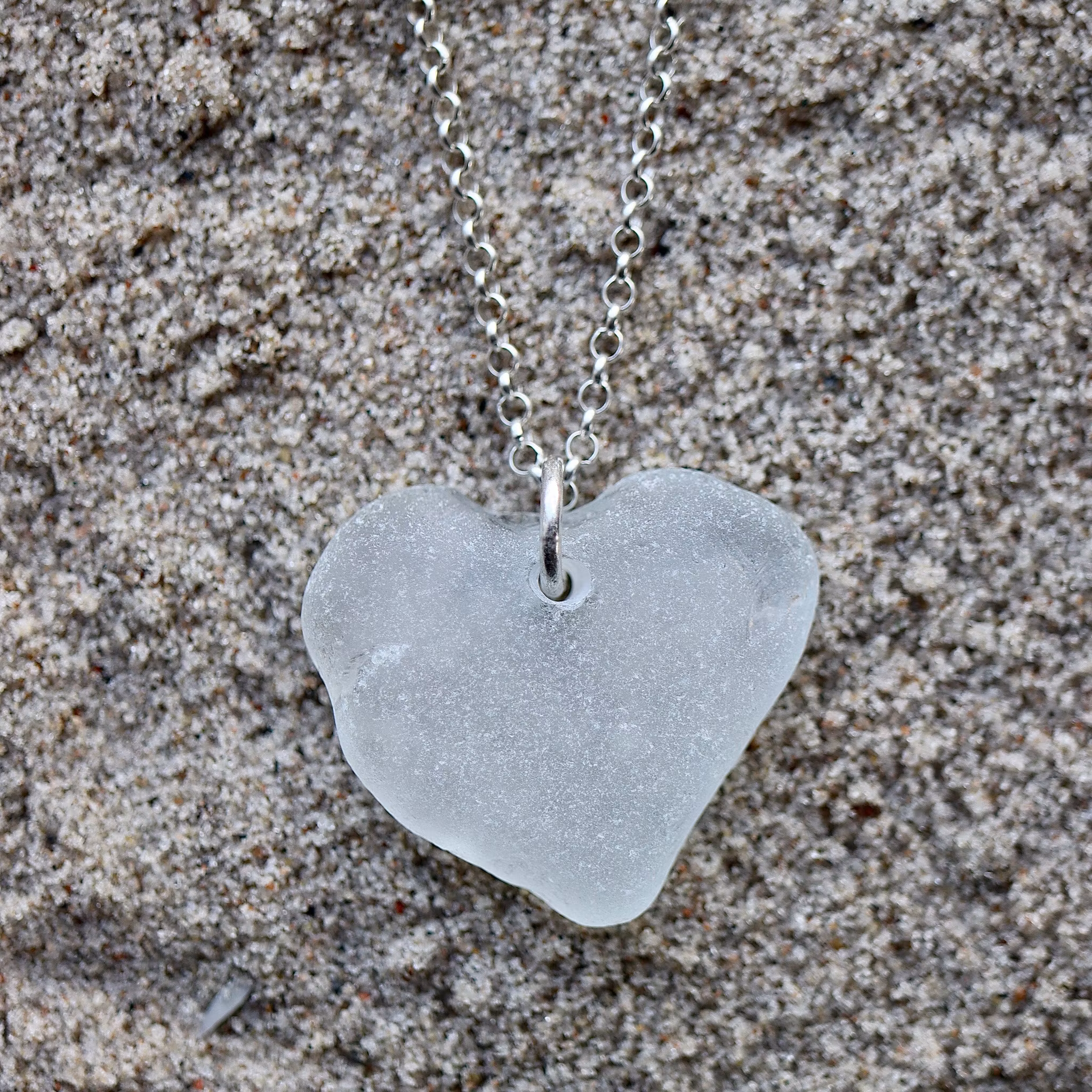 Halskedja av äkta silver, välj mellan 45, 50 och 60 cm, i låset sitter en plexitag "Havsglas" tillverkad i Sverige.