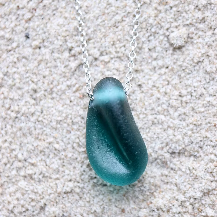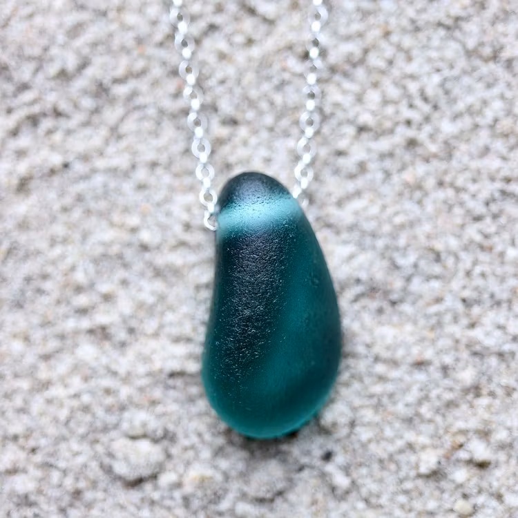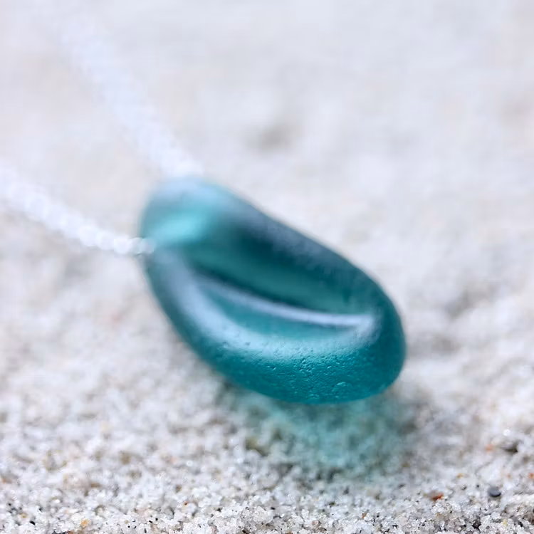 Havsglaset är samlat längs Skånes stränder och helt obearbetat, endast varsamt tvättat och borrat.