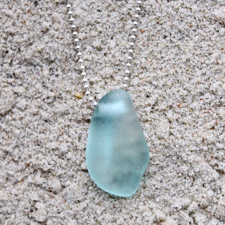 Havsglaset är samlat längs Skånes stränder och helt obearbetat, endast varsamt tvättat och borrat.