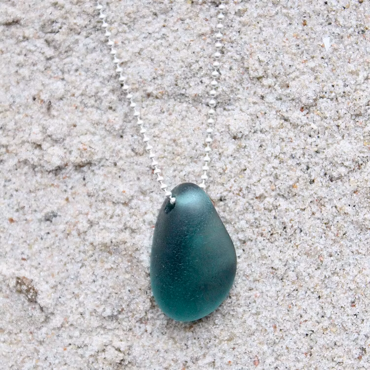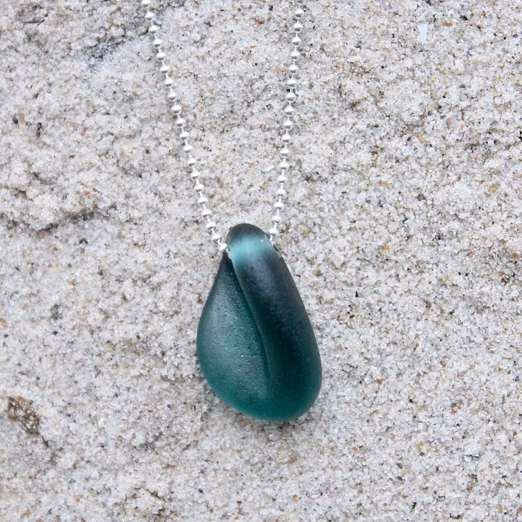 Havsglaset är samlat längs Skånes stränder och helt obearbetat, endast varsamt tvättat och borrat.