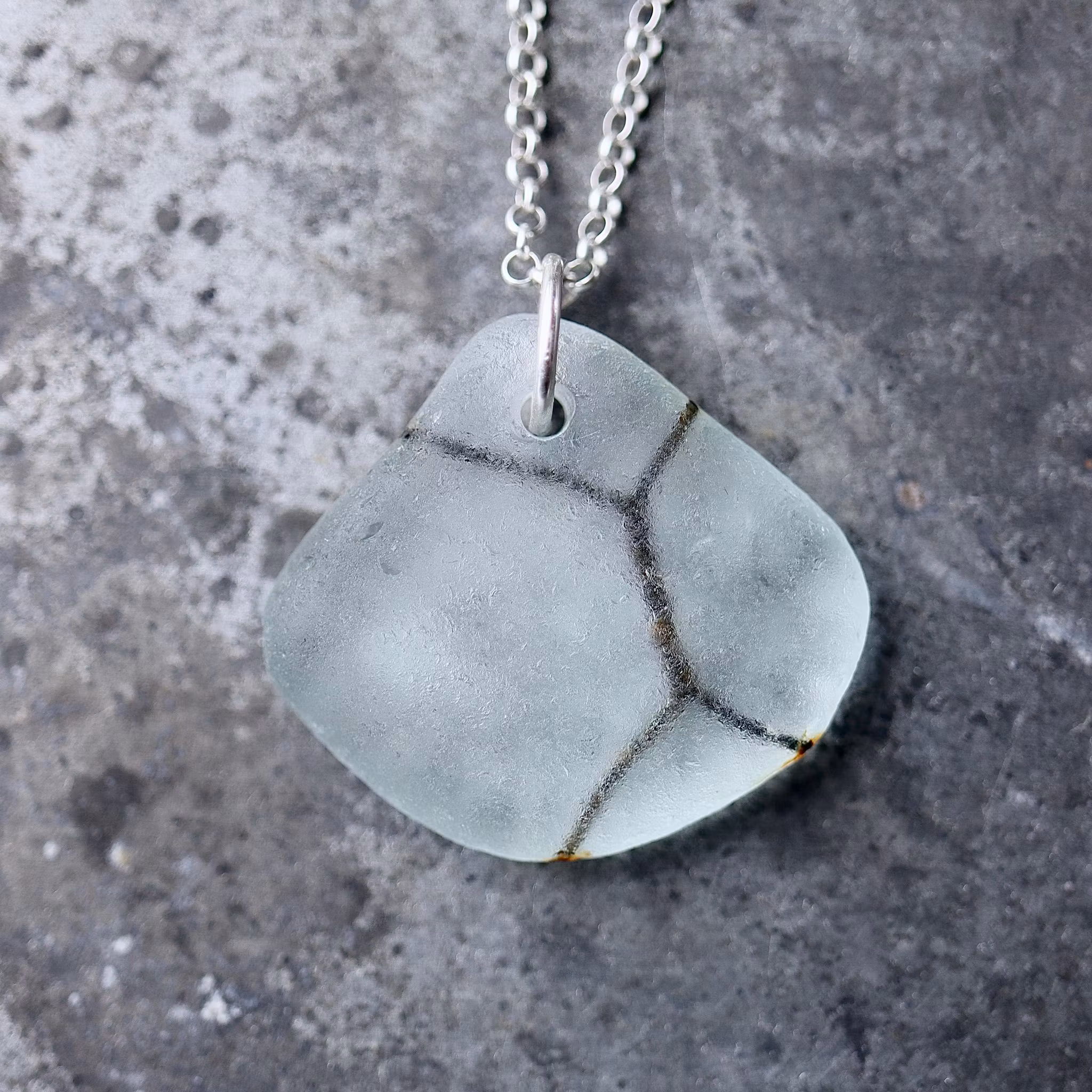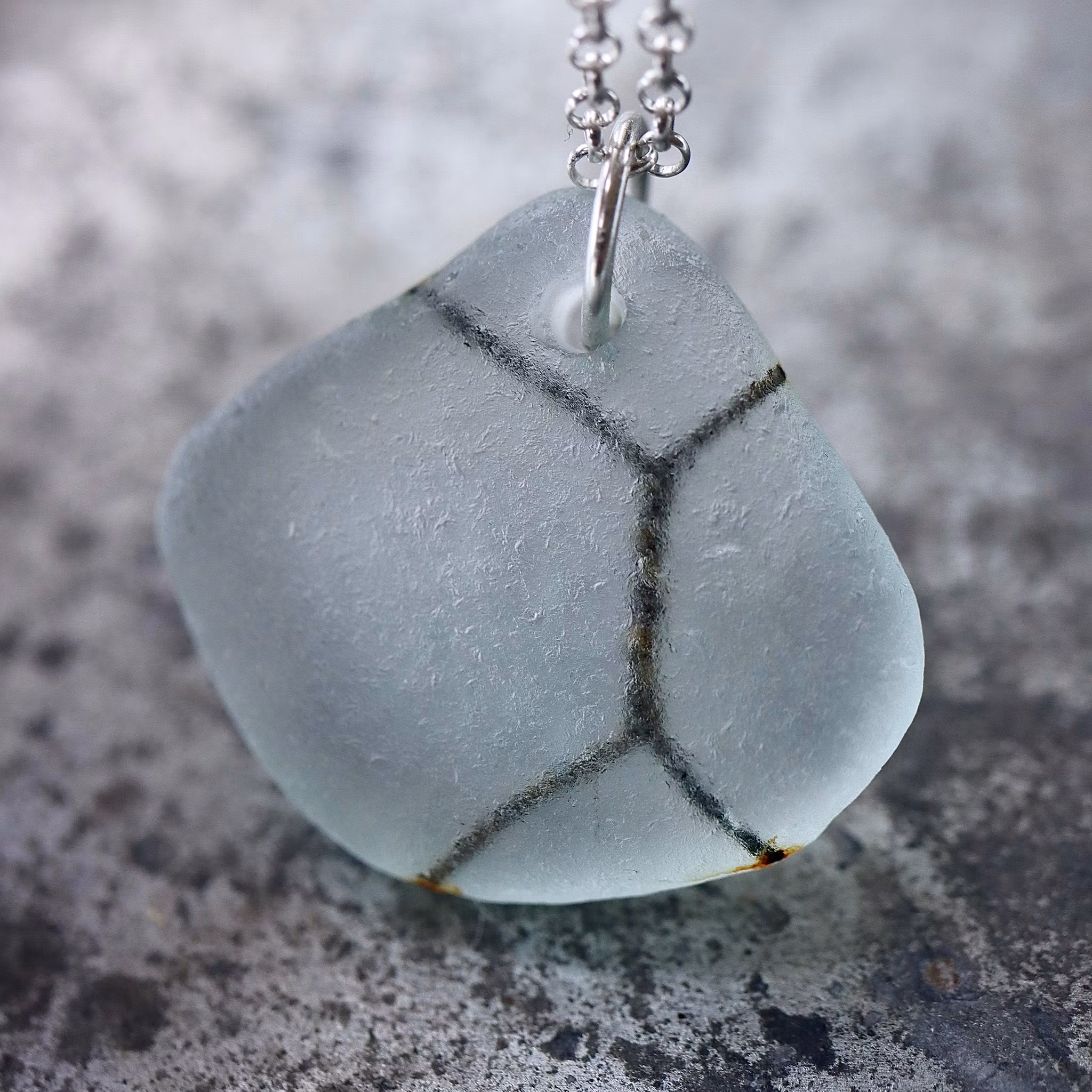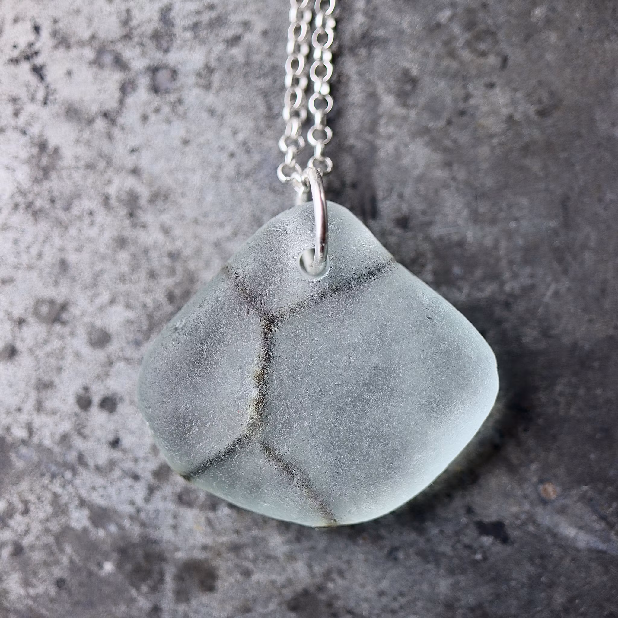 Havsglaset är samlat längs Skånes stränder och helt obearbetat, endast varsamt tvättat och borrat.