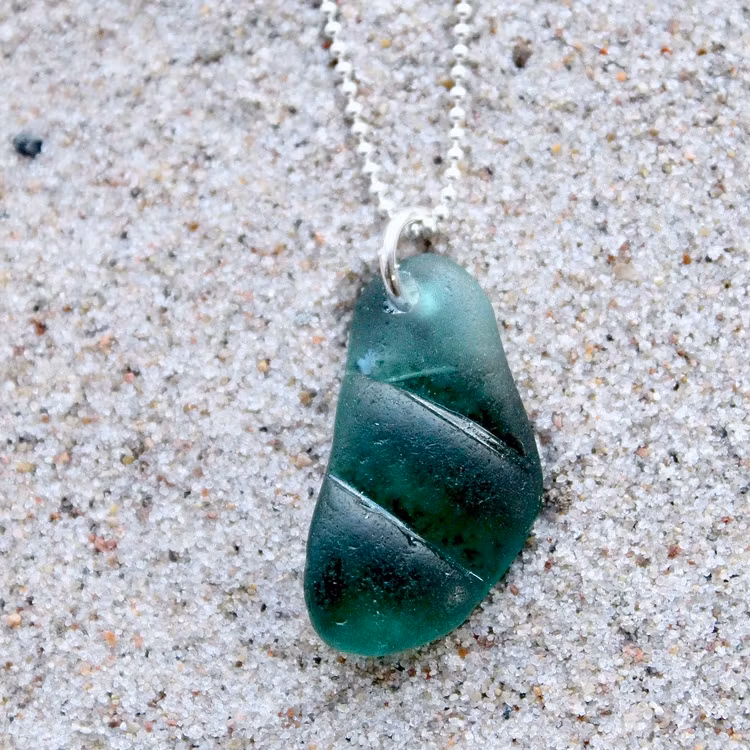 Havsglaset är samlat längs Skånes stränder och helt obearbetat, endast varsamt tvättat och borrat.