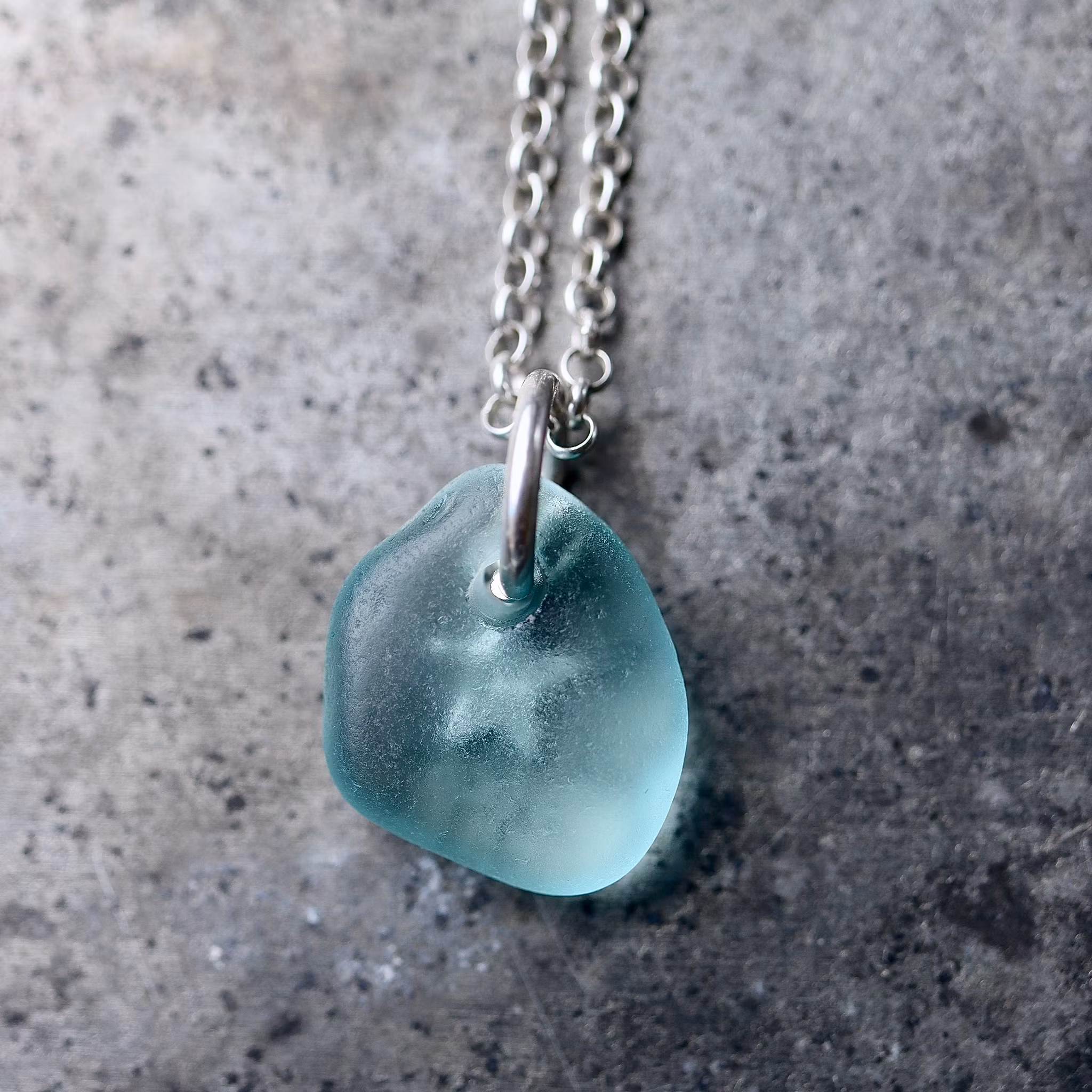 Havsglaset är samlat längs Skånes stränder och helt obearbetat, endast varsamt tvättat och borrat.