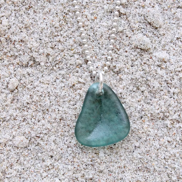 Havsglaset är samlat längs Skånes stränder och helt obearbetat, endast varsamt tvättat och borrat.