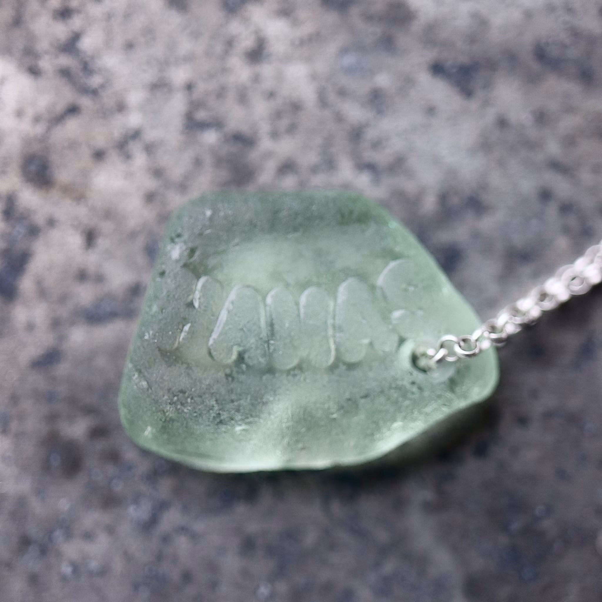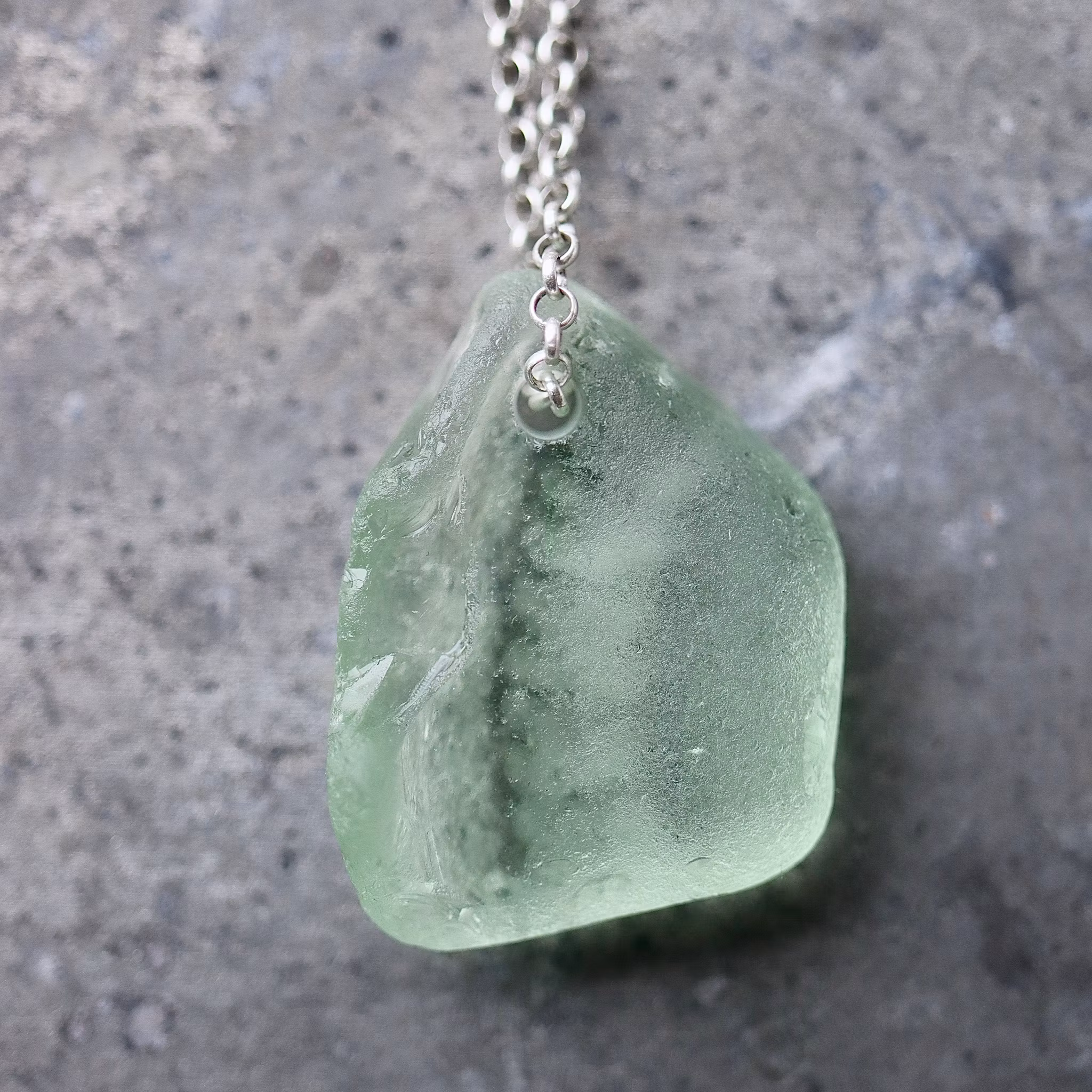 Havsglaset är samlat längs Skånes stränder och helt obearbetat, endast varsamt tvättat och borrat.