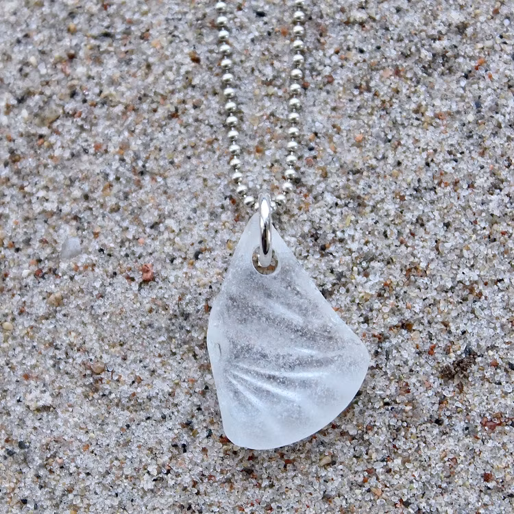 Havsglaset är samlat längs Skånes stränder och helt obearbetat, endast varsamt tvättat och borrat.
