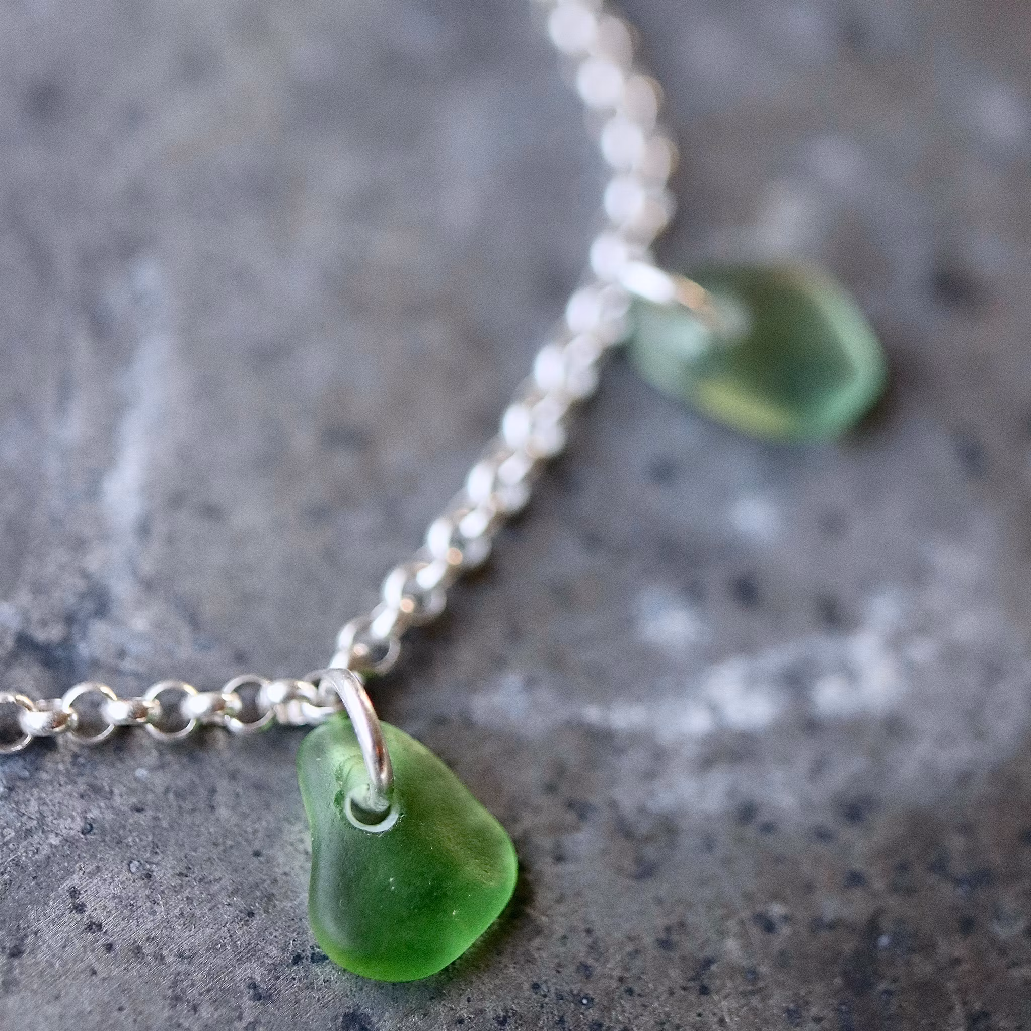 Fem matchande havsglas i kedja av äkta silver, justerbart till 17 eller 19 cm.