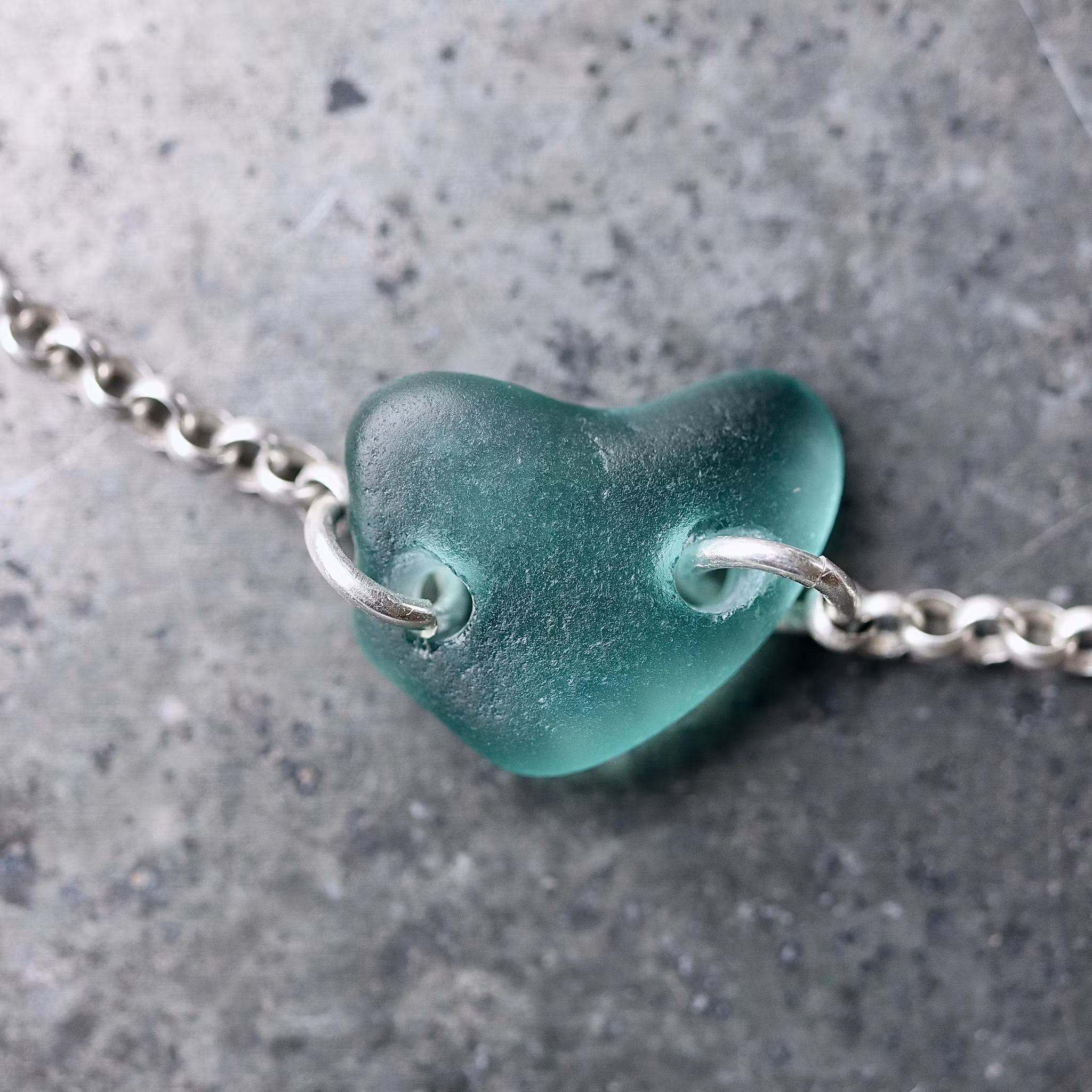 Kedja av äkta silver, justerbart till 17 eller 19 cm, i låset sitter en plexitag "Havsglas" tillverkad i Sverige.