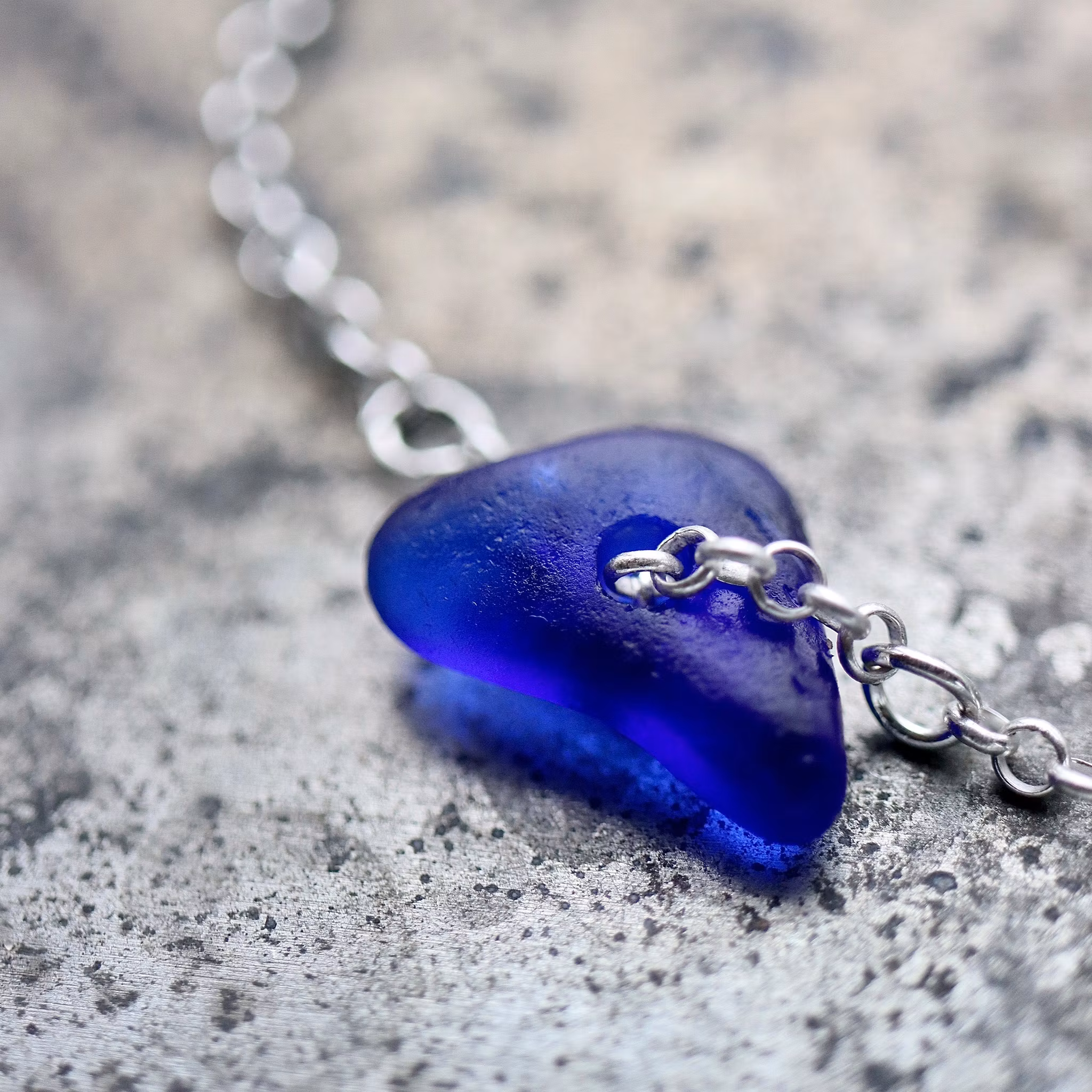 Havsglaset är samlat längs Skånes stränder och helt obearbetat, endast varsamt tvättat och borrat.