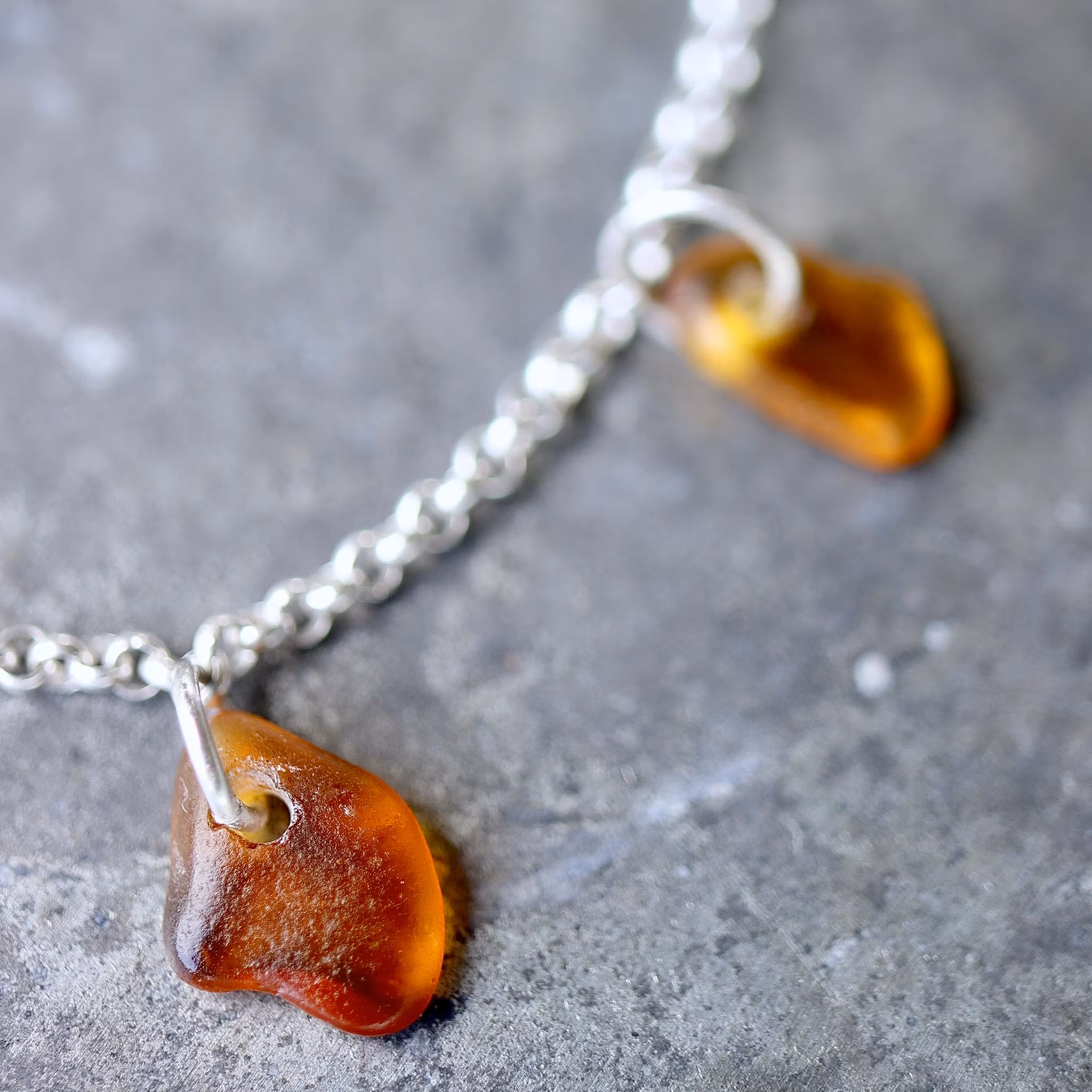 Fem matchande havsglas i kedja av äkta silver, justerbart till 17 eller 19 cm.