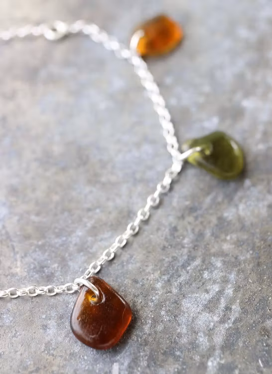 Fem matchande havsglas i kedja av äkta silver, justerbart till 17 eller 19 cm.