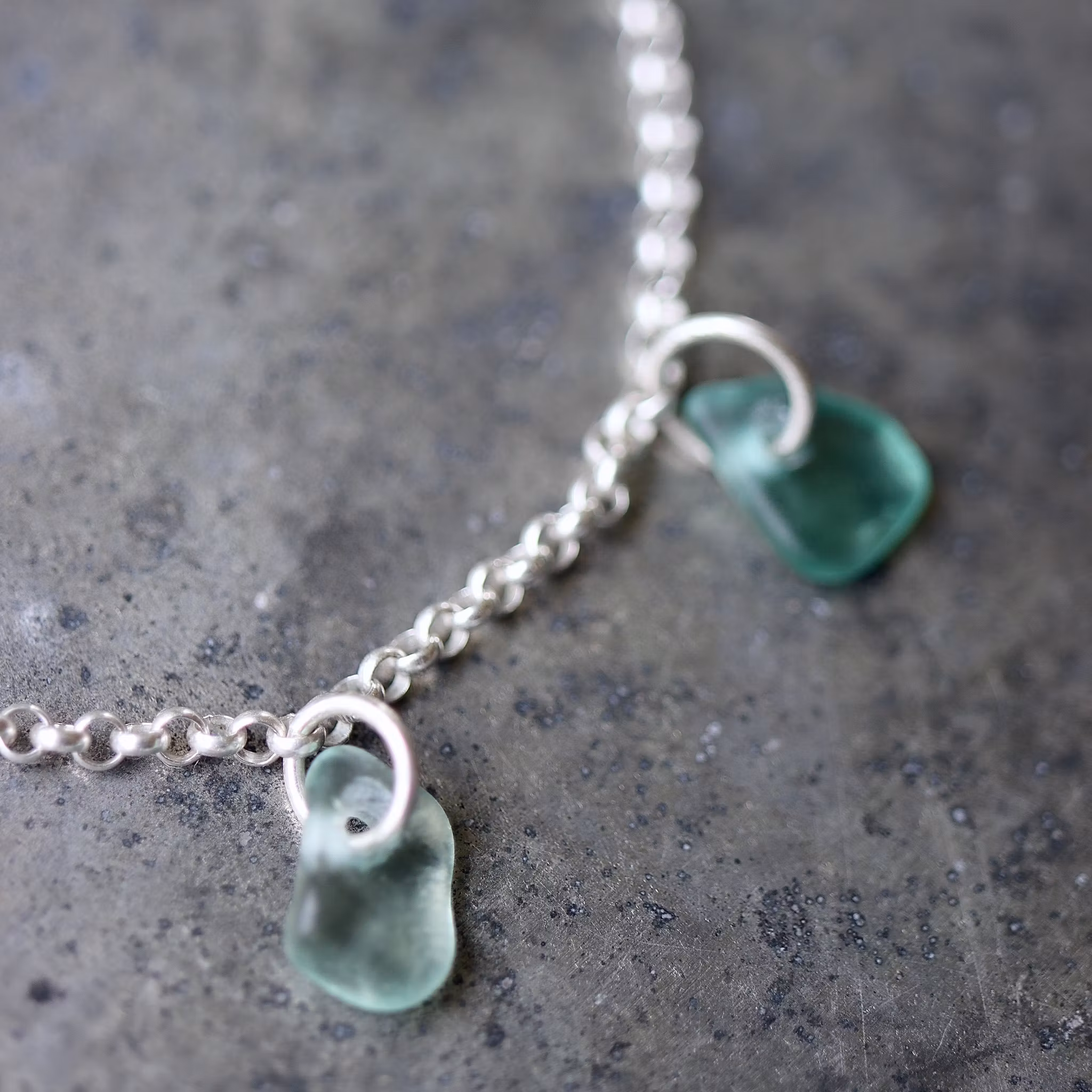 Fem matchande havsglas i kedja av äkta silver, justerbart till 17 eller 19 cm.