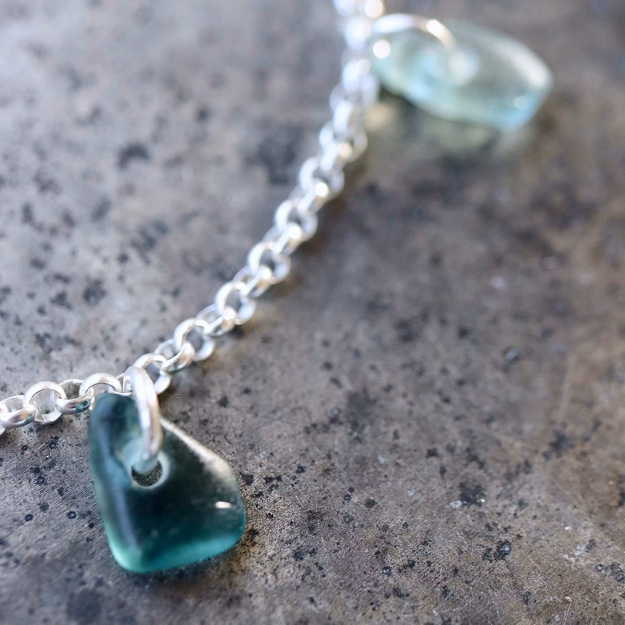 Fem matchande havsglas i kedja av äkta silver, justerbart till 17 eller 19 cm.