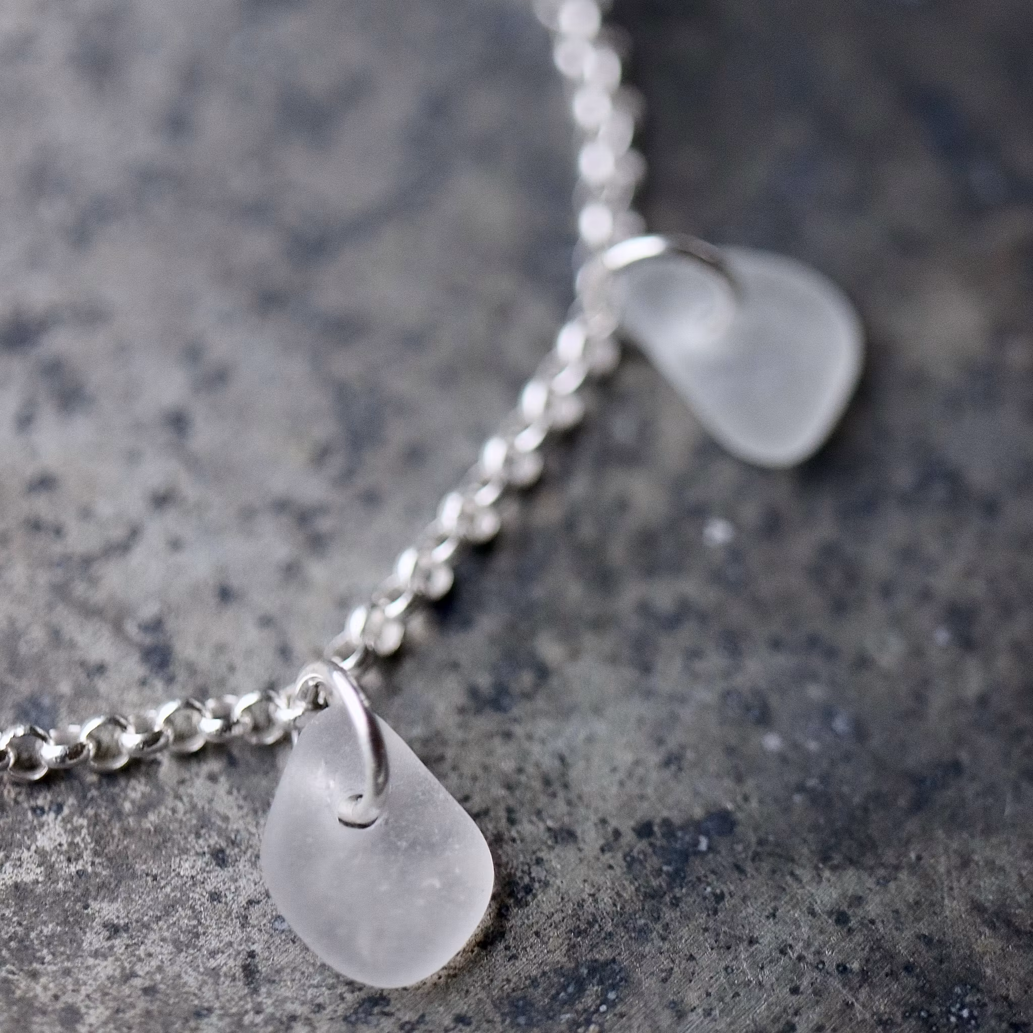 Fem matchande havsglas i kedja av äkta silver, justerbart till 17 eller 19 cm.