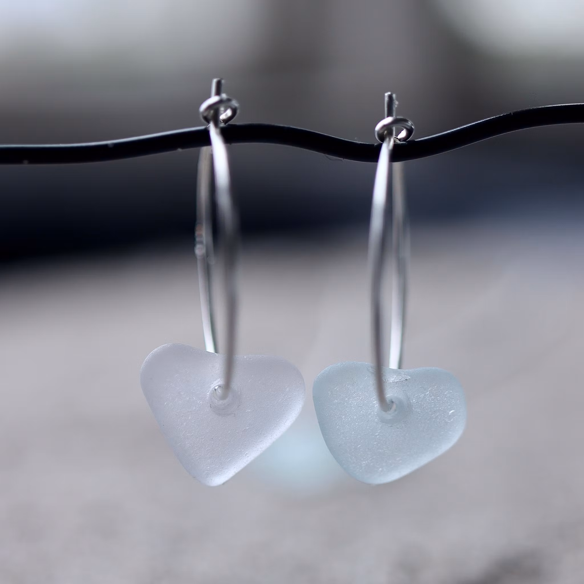 Örringar av äkta silver, observera att de två havsglasbitarna i paret inte är identiska, utan varierar en aning i form, tjocklek och färgnyans.