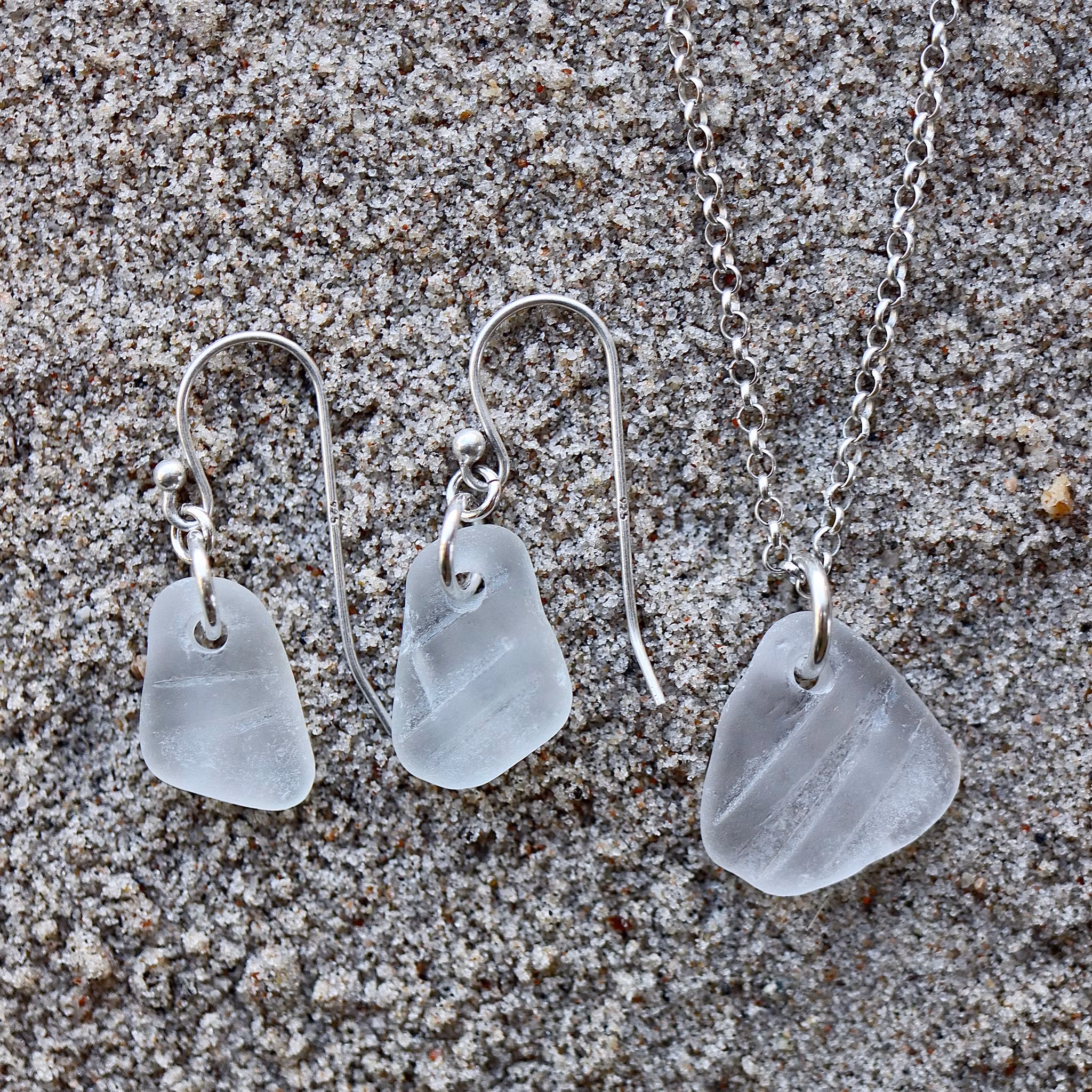 Havsglaset är samlat längs Skånes stränder och helt obearbetat, endast varsamt tvättat och borrat.